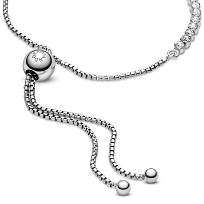 از اسم آن اشتباه برداشت نکنید این دستبند فقط برای بازیکنهای تنیس طراحی نشده است و روی مچ دست هر زنی میدرخشد! این دستبند نقرهای که با الهام از طرحهای قدیمی دستبندهای تنیسی پاندورا ساخته شده، با نگینهای شفاف زیرکُنیا تزیین و درخشندهتر شدهاست.همچنین کشویی یا لغزنده بودن گیرهی آن به شما این اجازه را میدهد که اندازه آن را به دلخواه تغییر دهید.