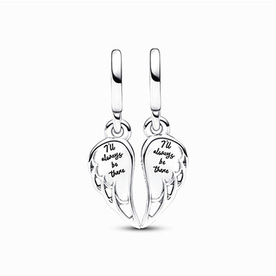این بال های درخشان طراحی شده اند که به اشتراک گذاشته شوند. این چارم دو بخشی را با فرشته زندگی خود تقسیم کنید.روی این چارم با نگین های شفاف و آبی تزیین شده است. پشت این بال ها پیام "من همیشه پیشت خواهم بود"(I’ll always be there) حکاکی شده است تا به عزیزان خود عشقتان را نشان دهید.