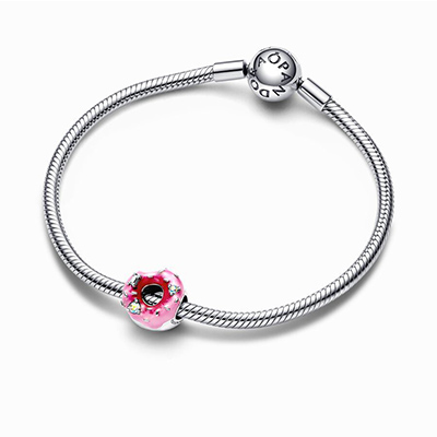یک هدیه به شیرینی عشق شما. طراحی چارم دونات درخشان پاندورا با الهام از هنر پاپ و رنگ های آب نباتی و روشن الهام گرفته شده است. این چارم خوشمزه و در عین حال مدرن به شکل یک دونات از جنس نقره است که با استفاده از لعاب رنگی صورتی خوردنی تر شده است! (چه کسی می تواند در برابر یک دونات خوشمزه مقاومت کند؟) روی این دونات با نگین های شفاف درخشان تر شده و پشت آن عبارت «عشق در اولین لقمه» حک شده است. این چارم خوشمزه را به چارم های مورد علاقه دیگر خود اضافه کنید و لذت ببرید.