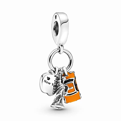 عشق خود به سیب بزرگ آمریکا یا همان شهر نیویورک را با این چارم آویز نشان دهید. این چارم آویز نقرهای با داشتن سه نماد شهر نیویورک، دارای آویز سیب حکاکی شده با نام شهر، مجسمه آزادی کامل با مشعل، و کابین تاکسی دارای جزئیاتی مانند لعاب سیاه و زرد است. آن را به عنوان یادآور شهری که دوست دارید بپوشید یا آن را به کسی که می خواهید سفرتان را با او به اشتراک بگذارید هدیه دهید.