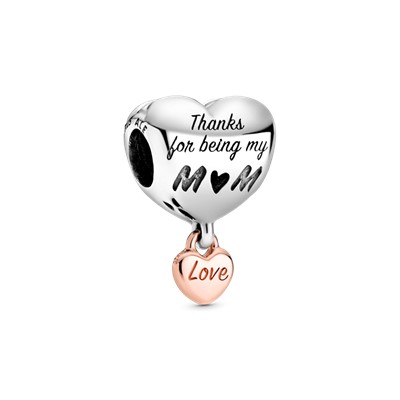 بگذارید این چارم قلبی و دو رنگ پاندورا حرف دل شما را به مادرتان بزند! این چارم دستساز به شکل یک قلب نقرهای و آویز کوچکی با روکش رزگلد ۱۴ عیار طراحی و ساخته شدهاست. روی قلب نقرهای پیام "ممنون که مادرم هستی" (Thanks for being my mum) و روی دو طرف آویز کلمات "عشق" (Love) و "تو" (You) حکاکی شدهاست. با این چارم زیبا نشان دهید چقدر مادرتان را دوست داشته و جای او واقعا در اعماق قلب شماست.