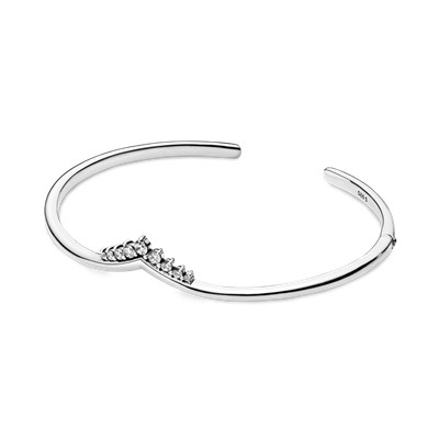 با دستبند النگویی باز تاج جناغی پاندورا، که به صورت دستی طراحی و ساخته شدهاست مانند یک پرنسس بدرخشید.ترکیب شکل تاج و جناغی بودن این دستبند،به زنانه شدن و در عین حال پر شور و هیجان بودن این دستبند کمک کرده است.شما میتوانید این النگو را با النگو یا دستبندهای دیگر ست کرده و استایل خاص خود را بسازید.این النگو همچنین، دارای یک لولای خاص برای باز و بسته شدن و در دست کردن آسان میباشد.