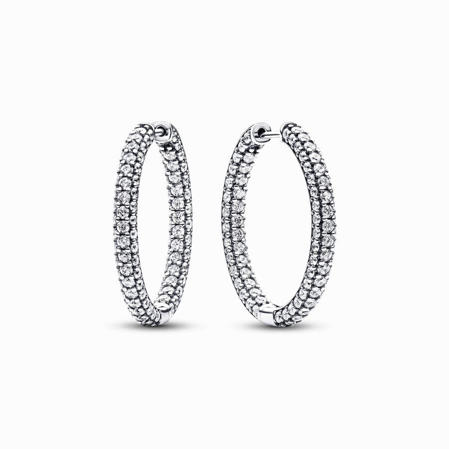 به ظاهر روزانه خود کمی درخشش اضافه کنید. این گوشواره های حلقه ای دارای چند ردیف نگین شفاف در اطراف آن است و با هر ظاهر و استایلی هم خوانی دارد. آن را به مجموعه گوشواره های پاندورایی خود اضافه کرده و استایل خاص خود را با آن ها بسازید.