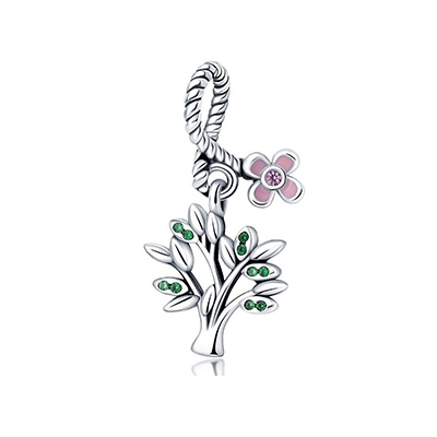 زیبایی طبیعت را با این آویز درخشان و زیبا به استایل خود بیاورید. این آویز نقره ای که به صورت دستی طراحی و تزیین شده به شکل درختی سبز و شکوفه ای صورتی و زیبا در بالای آن ساخته شده است. آن را به استایل بهار خود اضافه کرده و حال و هوای درختان پر شکوفه را همواره با خود داشته باشید.