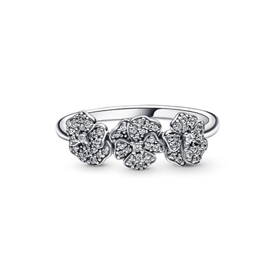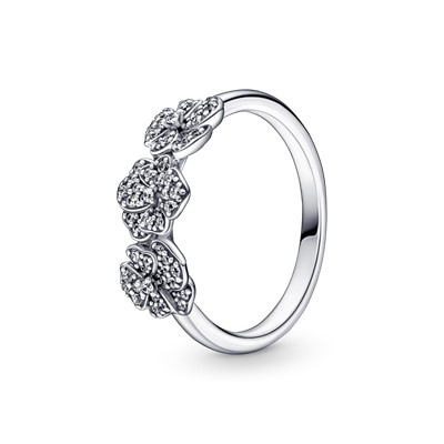 با خود یادآوری از شیرینی فصل بهار همراه داشته باشید.سه بنفشه درخشان تزیین شده با نگینهای زیرکُنیا شفاف روی حلقهی صیقلی و نقرهای قرار دارند.گل بنفشه نماد عشق و اشکال مختلف آن است، با خود این انگشتر را به تنهایی یا با انگشترهای دیگر بنفشهدار پاندورا داشته باشید تا همواره به یاد عزیزانتان باشید.جدیدترین گل باغ پاندورا را به کلکسیون پر گل خود اضافه کنید.