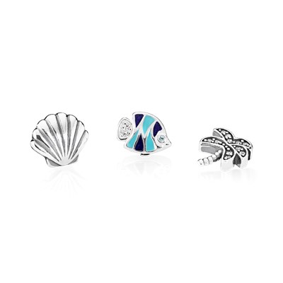طراحی لاکتهای پاندورا با دیوارههایی نقرهای و شیشهای میباشد تا شما بتوانید چارمهای کوچک مخصوص آنها را در داخلشان گذاشته و به روشی جدید شخصیت خود را به دنیا نشان دهید.این ست زیبا و نقرهای را به یاد جزایر استوایی،گرمای خورشید تابستان و سواحل آفتابی به لاکت خود اضافه کنید.چارم نخل با نگینهای شفاف زیرکُنیا و چارم ماهی با لعاب آبی به صورت دستی تزیین شدهاند تا رنگ و درخششی خاص به لاکت شما اضافه کنند.