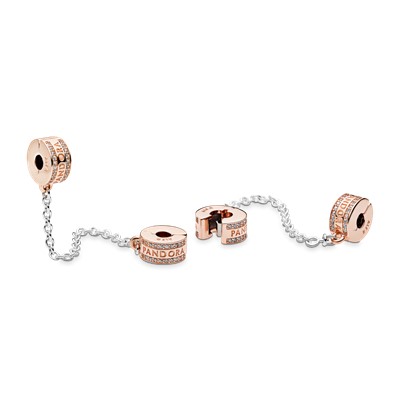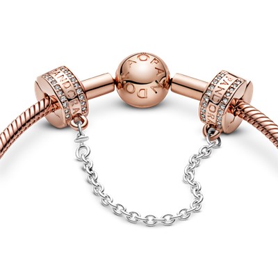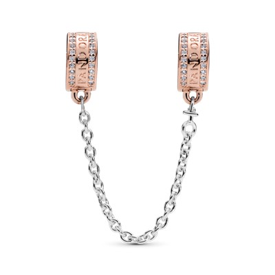 چه بخواهید کمی تحرک و درخشش به استایل خود اضافه کنید چه بخواهید از امن بودن چارمهای خود مطمئن شوید بهترین انتخاب برای شما زنجیر ایمنی لوگو و نگیندار پاندوراست. این زنجیر ایمنی با گیرهی سیلیکونی را به دستبند دقایق خود اضافه کرده و مجموعه خود را کاملتر کرده و کامل نگهدارید! این زنجیر ایمنی زیبا با لوگوی پاندورا و نگینهای شفاف زیرکُنیا تزیین شده و دو رنگ(گیرهها رزگلد با روکش رزگلد ۱۴ عیار و زنجیر نقرهای) میباشد. دو سر این زنجیر با قرار گرفتن در دو طرف گیرهی دستبند شما از گم شدن چارمهای دقایق شما جلوگیری میکند.