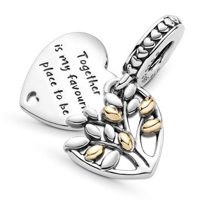 پر مفهومترین روابط خود یعنی روابط خانوادگی را با این چارم زیبا و دو رنگ در استایل خود جشن بگیرید.این چارم دو بخشی به صورت نماد خانواده یعنی درخت خانوادگی و یک دیسک نقرهای و قلبی شکل با پیام "با هم بودن جای مورد علاقه من است" (Together is my favourite place to be) طراحی و ساخته شدهاست.آن را به مجموعه چارمهای خانوادگی خود اضافه کرده یا به عزیزانتان هدیه دهید.