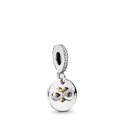 چارم آویز قلب ابدی دو رنگ پاندورا، را به یاد عشقی که تا ابد در قلب خود خواهید داشت به چارمهایتان اضافه کنید.این چارم دستساز و دو رنگ از دو دیسک تشکیل شدهاست.دیسک دایرهای اول دارای نماد ابدیت بوده که با نگینهای شفاف زیرکُنیا تزیین شده و دیسک دوم قلبی از جنس طلا ۱۴ عیار است.شما میتوانید این چارم دو رنگ و درخشان را روی دستبند یا گردنبند خود داشته و با هر مجموعهای آن را ست کنید.