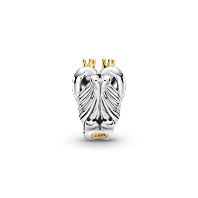 ظرافت برازنده عشق خود را با این چارم دو رنگ به استایلتان بیاورید.این چارم دستساز و دو رنگ با نقره و طلا ۱۴ عیار به شکل دو قو عاشق و تاجهایشان طراحی و ساخته شدهاست.قوها همواره نماد عشق، ظرافت، جادو و خوشبختی بوده و هستند.این چارم زیبا را همواره همراه داشته باشید تا به شما قدرت یکی شدن را یادآور شود.
