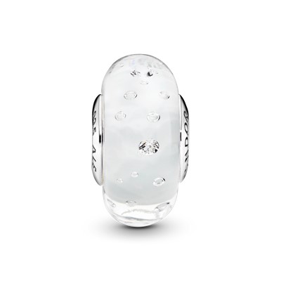 چارم مهره‌ای طرح شیشه‌ی سفید حباب‌دار کریستال مورانو پاندورا