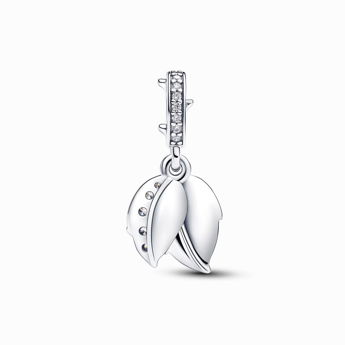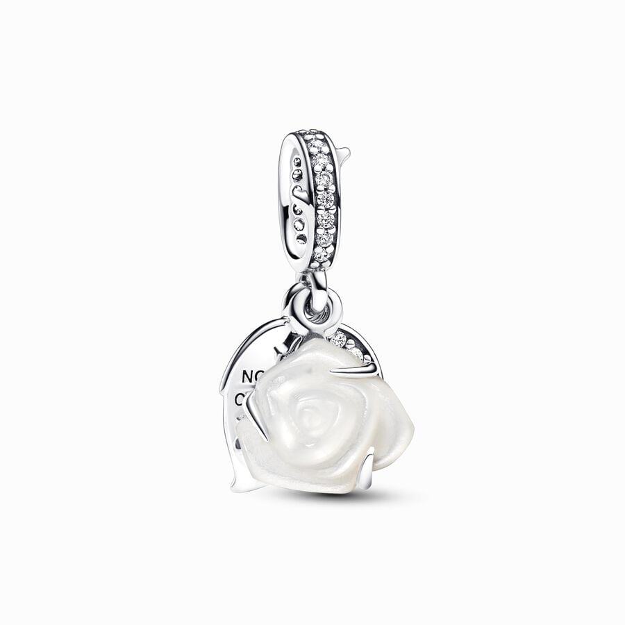 با این نماد عشق پاک ظرافت را به استایل خود بیاورید. این چارم دو بخشی و زیبا به شکل گل رزی سفید و برگ هایش طراحی و ساخته شده است. برای درخشش هرچه بیشتر این چارم با نگین های شفاف تزیین شده. همچنین پیام "هیچ چیز با تو قابل مقایسه نیست" (NOTHING COMPARES TO YOU) را می توانید روی آن ببینید.