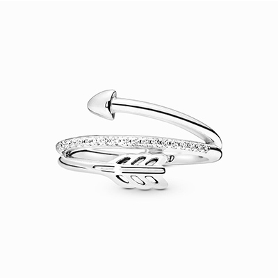 با این تیر رها شده از کمان به استایل پاندورایی خود نمادی از عشق بیاورید. درون این تیر که به دور انگشتان شما میچرخد و پیچیده شده است پیام "محبوب"(Loved) حکاکی شده و بخشی از این حلقه نقره ای با نگین های شفاف تزیین شده است.شما می توانید این انگشتر را به یاد عشق خود در دست داشته یا به او آن را هدیه دهید.
