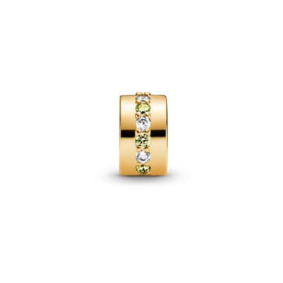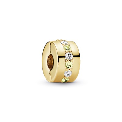 ردیفی از نگینهای زرد و شفاف زیرکُنیا،هالهی درخشان این چارم کلیپی ساده ولی زیبا را ساختهاند.این چارم طلایی دارای روکشی از طلا ۱۴ عیار بوده و شما میتوانید از آن برای مرتب کردن چارمهای دیگر خود استفاده کنید.این چارم دارای گیره سیلیکونی نیست و در صورتی که درست استایل نشود در جای خود ثابت باقی نمیماند.