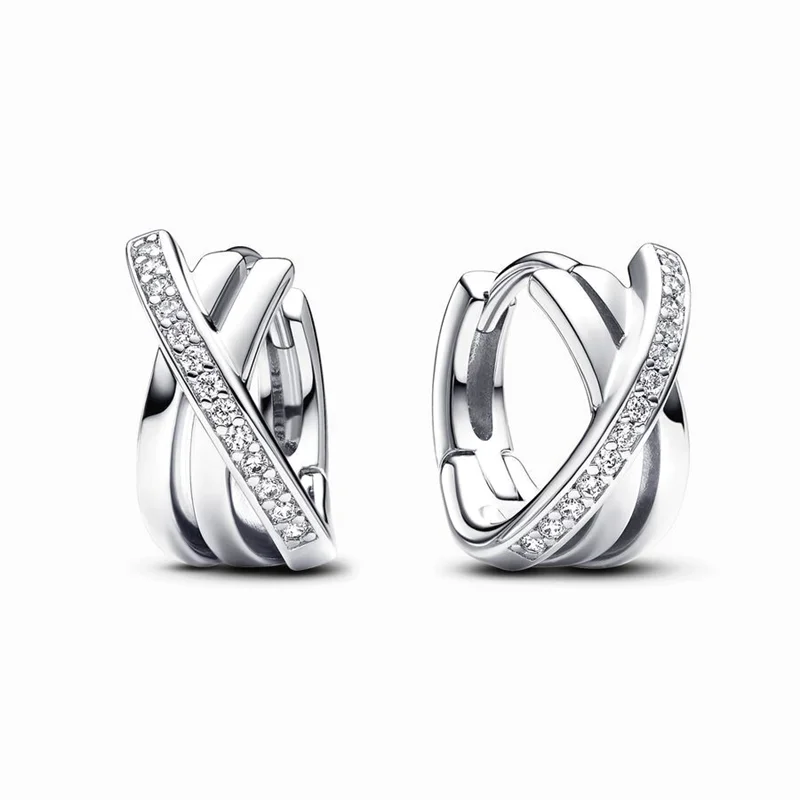 گوشواره حلقهای خطوط متقاطع درخشان پاندورا
